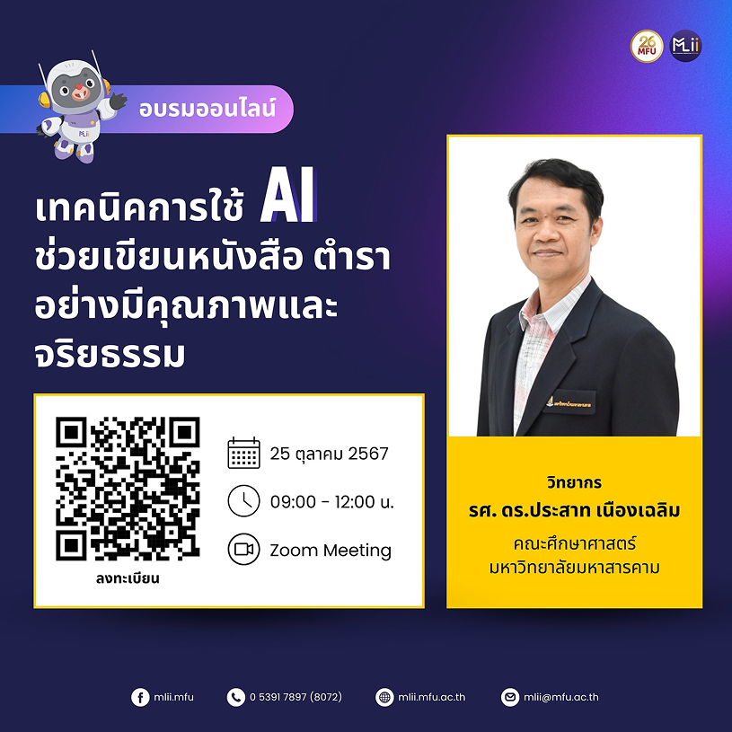อบรม หัวข้อ เทคนิคการใช้ AI ช่วยเขียนหนังสืออย่างมีคุณภาพและจริยธรรม