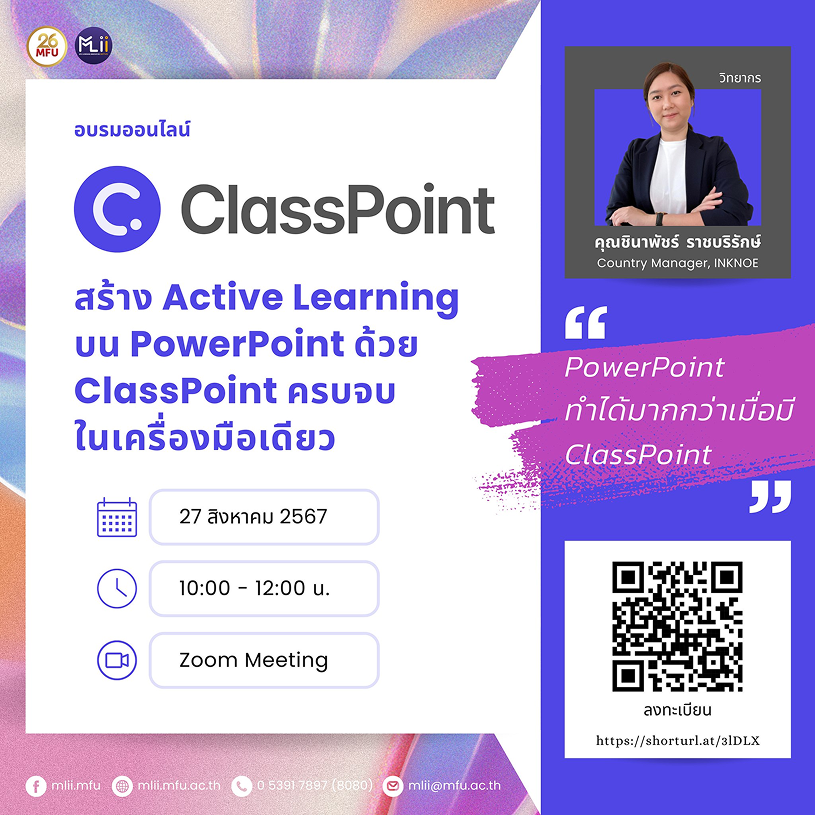อบรมหัวข้อ สร้าง Active Learning บน PowerPoint ด้วย ClassPoint ครบจบในเครื่องมือเดียว