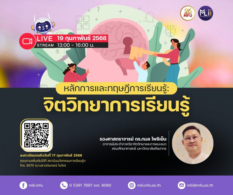 ในวันที่ 19 กุมภาพันธ์ 2568 เวลา 13.00-16.00 น. ผ่านระบบออนไลน์ วิทยากรโดย รองศาสตราจารย์ ดร.กมล โพธิเย็น อาจารย์ประจำภาควิชาจิตวิทยาและการแนะแนว คณะศึกษาศาสตร์ มหาวิทยาลัยศิลปากร